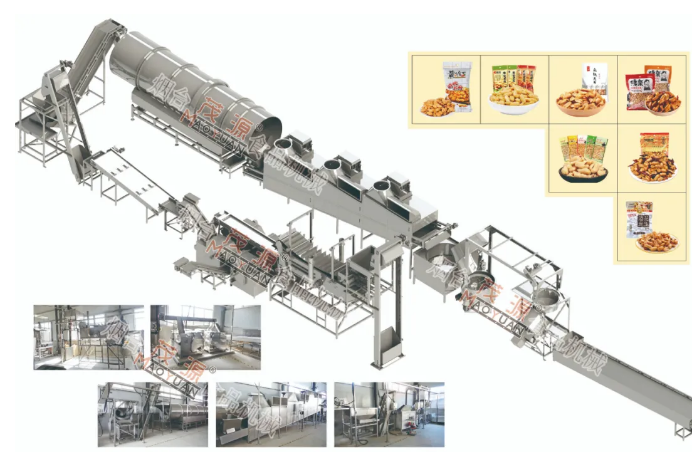 該生產(chǎn)線主要用于麻辣花生的生產(chǎn)加工。貼合傳統(tǒng)生產(chǎn)工藝,易清洗;產(chǎn)品色澤光亮,口感酥脆。